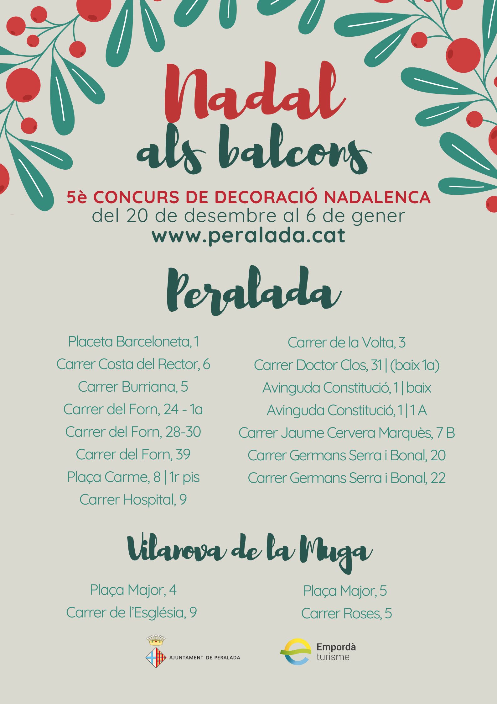 Per cinquè any, durant les festes de Nadal s’organitza un concurs d’ornamentació i decoració de balcons, finestres o façanes relacionat amb Nadal. D’aquesta manera, l’Ajuntament Peralada pretén incentivar i premiar els veïns i veïnes que millorin la decoració dels seus habitatges durant aquestes festes.