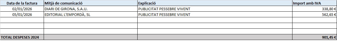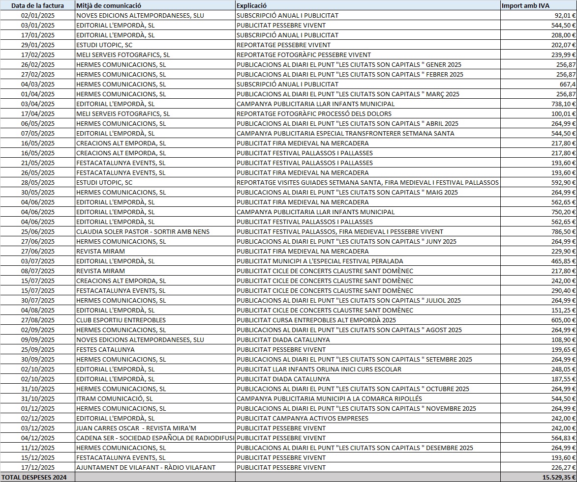 Aquesta és la despesa en publicitat a diferents mitjans de comunicació que ha fet l’Ajuntament de Peralada en els darrers anys.